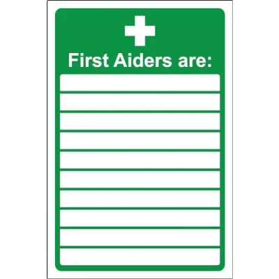 First aiders are Safety sign Self adhesive sticker 300mm x 200mm Case (Pack of 5)