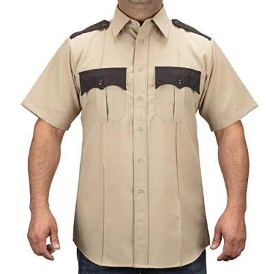 100% Polyester Two pleated pockets with pencil compartment on left pocket Two sewn-in creases front & three sewn-in creases back Hook & loop scalloped flaps with Velcro closure Seven front buttons
