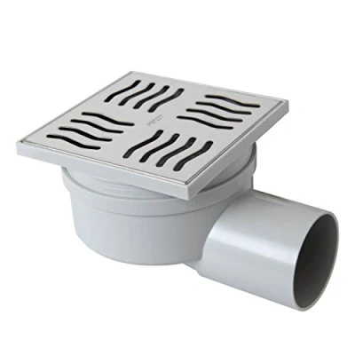 Dimensions: 100 x 100 mm horizontal drain 50 mm diameter swivel 360 ° Height adjustable from 80 mm to 70 mm Removable grill for inspection Prevents the escape of unpleasant odours Flow test water evacuation (en1253): 31 L/min, Manufacturer: First Plast