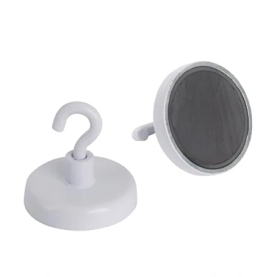 FIRST4MAGNETS Ferrite White Painted Clamping Magnet with M4 Hook for Hanging, Holding or Displaying Items 32mm Dia 7.3kg Pull