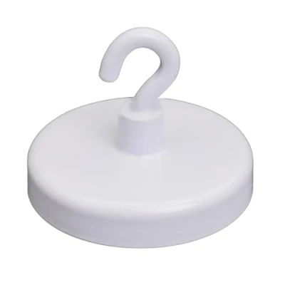 FIRST4MAGNETS Ferrite White Painted Clamping Magnet with M4 Hook for Hanging, Holding or Displaying Items 40mm Dia 10.2kg Pull