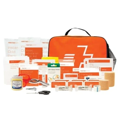 Designed for contact sports: includes dressings, blister plasters, and cold packs Beginner-friendly: great for individuals with basic first aid training High-visibility bag: bright orange design for easy identification on the pitch Organised storage: features removable pouches and elasticated net pockets Durable and portable: water-resistant seams with a padded shoulder strap and grab handle