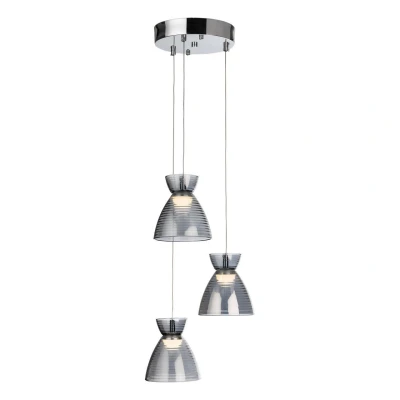The Firstlight LED Royale 3-Light Cluster Pendant is a dynamic and elegant feature designed to create a dazzling vertical focal point in modern interiors. Featuring a compact circular ceiling plate in bright chrome metalware and three striking smoked glass shades suspended at varying heights, this fixture is ideal for illuminating stairwells, hallways, or defining central dining areas. The cluster design ensures a layered and multi-dimensional light source.Each of the three shades features a unique decorative pattern within the smoked glass. This texture beautifully diffuses the light, adding depth and a sophisticated visual presence. The fitting includes three integrated 3W LEDs (9W total), delivering a combined 993 lumens of inviting 3000K warm white light, ensuring efficient, multi-directional illumination. The maximum drop is 1450mm, allowing you to adjust the individual cables to achieve your desired staggered or clustered effect. Being an integrated LED system, it includes a driver and comes with a reassuring 3-year guarantee.Choose the Royale 3-Light Cluster for a contemporary, energy-efficient lighting solution that delivers high-impact texture and architectural style. Its combination of sleek chrome, sophisticated smoked glass, and layered configuration ensures it will be a captivating feature in any modern home. Shop now at SimplyLED to secure this premium decorative pendant and design a stunning, vertical lighting installation.