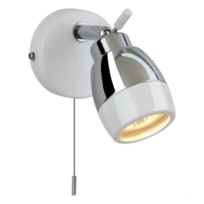 Firstlight Marine Modern Style Wall Spotlight with On/Off Pull Cord Chrome and White