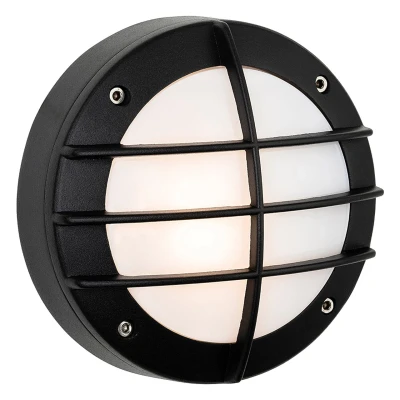 Illuminate your outdoor spaces with the captivating glow of the Firstlight Nova Modern Style Bulkhead Grille in Black with Opal diffuser. This compact wall light, featuring a diameter of 145mm, is more than just a source of illumination; it is a modern masterpiece that enhances your exterior with both style and substance.