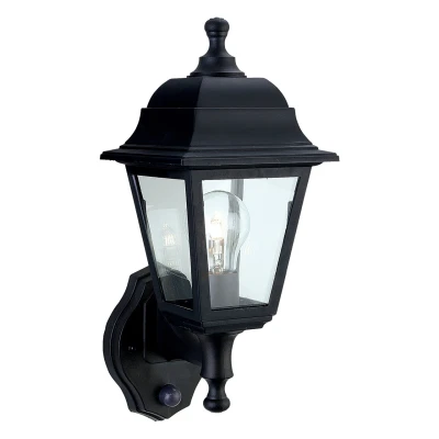 Firstlight Oslo Anti Corrosion Style Uplight Lantern PIR Sensor in Black and Clear Glass