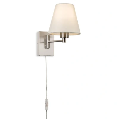 The Firstlight Plug-in Wall Light offers a stylish and exceptionally convenient lighting solution, eliminating the need for complex hard-wiring. This classic yet versatile fixture features elegant brushed steel metalwork and an appealing cream fabric shade. The adjustable swing-arm design and conical shade make it perfect for use as a bedside reading light or for providing focused ambient light in any casual living space.The main functional benefit of this light is its plug-in convenience: no channelling of walls with wiring is required to power them. You simply fix the light to the wall and plug it into the 3-pin wall socket below. The light is equipped with a generous 1.5 metre cable length and a handy in-line on/off switch for easy control. This flexibility makes it ideal for living rooms, bedrooms, workshops, and kitchens, especially in rented properties or areas where wall-sourcing power is difficult.With a height of 250mm and an adjustable projection up to 255mm, the lamp requires one standard E27 GLS bulb with a maximum wattage of 14W (sold separately). The cream shade provides a soft, warm diffusion of light, enhancing the cosy atmosphere of the room. Shop now at SimplyLED to secure this premium plug-in wall light and pair it with an energy-efficient E27 LED bulb.Requires 1 x LED E27 GLS bulb max 14W (sold separately).