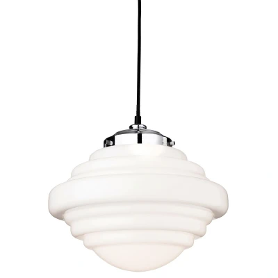 Net LightingSimply crafted in opal white glass the Art 1-Light Ceiling Pendant Fixture has gleaming chrome trim and distinct art deco flair. Perfect for lighting up a bedroom or living space this fixture is wonderfully elegant. It emits soft yet bright light thanks to the opal white glass diffuser.