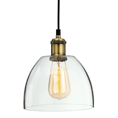 Net LightingAdd wonderful sparkle to a living area, bedroom or kitchen with the Empire Antique Brass Dome 1-Light Ceiling Pendant Fixture. From the beautifully shaped clear glass shade to the gleaming antique brass trim, this fixture is a study in elegance for a sophisticated look in any interior decorating scheme.