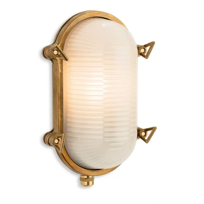 Introducing the Firstlight Nautic Traditional Style Oval Bulkhead in Brass with Frosted shade a timeless blend of classic elegance and practical functionality. Crafted from solid brass, this traditional ship-style bulkhead with its frosted glass shade is not just a lighting fixture; it's a statement of style and durability.The allure of this outdoor oval bulkhead lies in its captivating design. Finished in lustrous brass, it seamlessly combines aesthetic appeal with robust construction. The frosted glass shade adds a touch of sophistication while ensuring a gentle diffusion of light.Quality is non-negotiable when it comes to Firstlight Products. Manufactured with precision, this bulkhead stands as a testament to superior craftsmanship. The solid brass construction not only exudes durability but also ensures resistance to the elements, making it a reliable choice for both interior and exterior lighting needs.Illuminate your surroundings with the warm glow emanating from this exceptional bulkhead. The frosted glass not only enhances the visual appeal but also creates a soft, ambient light that sets the perfect mood. Imagine the charm it would bring to your outdoor spaces or the inviting ambiance it could create within your home.Installation is a breeze, adding to the user-friendly appeal of this traditional bulkhead. With a width of 105mm, height of 200mm, and depth of 110mm, it fits seamlessly into various settings. The bulkhead requires 1 x E27 GLS bulb with a maximum wattage of 42W, providing you the flexibility to choose the perfect level of brightness for your space.The Firstlight Nautic Traditional Style Oval Bulkhead is not just a lighting solution; it's an embodiment of timeless design, quality craftsmanship, and versatile functionality.Requires 1 x E27 GLS bulb max 42W (sold separately).