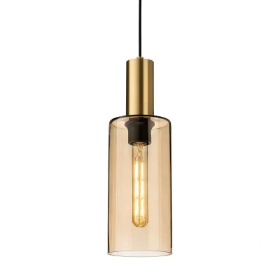 The Firstlight Rimini Pendant is a stylish and versatile fixture that introduces a sophisticated touch of colour and contemporary elegance to any interior. This modern pendant features a sleek cylindrical shade made from smoked amber glass. The warm, tinted glass is perfectly complemented by the refined satin brass metalwork, creating a luxurious and inviting aesthetic that enhances the visual warmth of the light.This pendant is ideal for use individually or in multiples to create a stunning lighting arrangement over key areas. It is particularly effective when mounted above a table, breakfast bar, or reception area, where its focused light and decorative shade can make a statement. The maximum drop is generous at 1790mm, making it highly suitable for rooms with high ceilings or long vertical spaces. The glass shade has a diameter of 120mm and a height of 385mm.The Rimini Pendant requires one standard E27 GLS bulb with a maximum wattage of 14W (sold separately). We highly recommend using an LED E27 filament bulb to enhance the vintage-modern look of the fixture, as the lamp is clearly visible through the glass. Choose the Rimini Pendant for a chic, high-quality decorative light source. Shop now at SimplyLED and complete the look with an efficient E27 LED bulb.Requires 1 x LED E27 GLS bulb max 14W (sold separately).