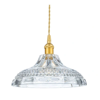 Introducing the Firstlight Wilshire Traditional Style 24cm Pendant Light in Satin Gold and Decorative Glass, a captivating piece that will transform your space with elegance and warmth. This pendant light is more than just an illuminating fixture; it's a work of art designed to evoke emotions and inspire a sense of luxury in your home.Crafted with meticulous attention to detail, this pendant light is a fusion of classic aesthetics and contemporary elegance. The beautiful clear decorative glass exudes a timeless charm, while the satin gold metalwork and cable add a touch of sophistication. The 24cm diameter and adjustable drop length ranging from 230mm to 1220mm make it versatile and suitable for various settings.The Wilshire pendant light stands out as a versatile addition to your home. It can be used as a single pendant to create a focal point or as part of a group, offering endless possibilities for your design ambitions. Whether it's illuminating your kitchen, creating a cosy ambiance in your living room, or casting a warm glow over your dining area, this pendant light fits seamlessly into various spaces.Manufactured by Firstlight Products, a renowned name in lighting, the Wilshire pendant light embodies the highest standards of quality and craftsmanship. The combination of metal and glass materials ensures its durability and longevity. You can trust in the quality of this pendant light to enhance your space for years to come.This pendant light doesn't just illuminate; it creates an inviting atmosphere. With the potential to accommodate one E14 golfball bulb, max 40W (sold separately), it provides a warm and welcoming ambiance. The decorative glass shade enhances the quality of light, casting enchanting patterns and adding a touch of magic to your room.Installing the Wilshire pendant light is a breeze. The adjustable cable length and ceiling rose dimensions (diameter 100mm x Height 25mm) provide flexibility during installation. It requires one E14 golfball bulb, max 40W, which can be easily sourced. Bulbs are sold separately, allowing you to choose the one that best suits your preferences.Elevate your home with the Wilshire Traditional Style Pendant Light. Whether you're looking to add a touch of tradition to your kitchen, create a cosy haven in your living room, or make your dining area more inviting, this pendant light is the answer.Requires 1 x E14 golfball bulb max 40W (sold separately).