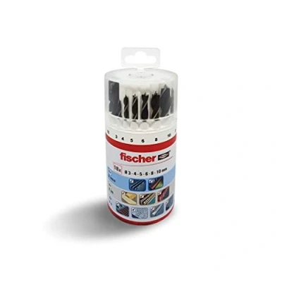 SUPERIOR VERSATILITY: This 18-piece barrel drill kit offers a wide range of sizes from 3mm to 10mm, ensuring maximum efficiency for masonry, wood and metal work. Ideal for both professionals and hobbyists HIGH QUALITY MATERIALS - Made of durable steel, these bits ensure long life and optimum performance. Perfect for easily penetrating different materials without losing sharpness or effectiveness Complete set for every need: With different diameters (3 / 4 / 5 / 6 / 8 / 10 mm), this kit is the ideal solution for a wide range of applications, from precision drilling to the heaviest jobs Ease of Use and Compatibility: Designed to fit any standard drill, these bits are easy to install and use, making every job faster and less tiring ORGANIZATION AND PORTABILITY: The kit comes in a handy storage bag, making it easy to organize and carry the tips. You'll never miss the right tip for your project! Contains: 6 carbide masonry bits, 6 professional steel wood drill bits with centering device and cylindrical attachment, 6 HSS-Co professional metal drill bits in cobalt tip, Weight: 0.9259415004 pounds, Manufacturer: Fischer