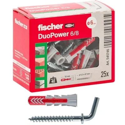Fischer 541746 Dowel with Short Hook Duopower, Grey/Red, 25 pz, Set of Pieces