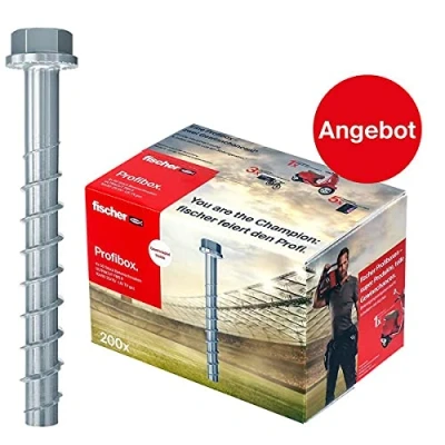 Fischer 553687 Profibox ULTRACUT FBS II 10x80 25/15/ US TX gvz Screw for Fixing railings, Metal Profiles, Shelving Systems in Concrete, Pack of 200, Grey