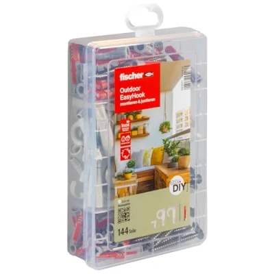 This is included: the professional box consists of 128 parts and includes Duopower dowels as well as EASYHOOK angle hooks, round hooks, eye hooks and screws Quick, easy installation: with the EasyHook, standard chipboard screws are transformed into hooks, which can then be easily mounted in the wall using a screwdriver or cordless screwdriver without scratching or bending Flexibly attached: the hook can be easily attached to the countersunk screw and positioned with variable wall distances depending on the screw-in depth, whereby the predetermined breaking point allows flexible alignment of the screw hook Areas of application: the hooks are suitable for non-cracked concrete, solid and perforated stone or plasterboard - with the angle hooks pictures, shelves or mirrors can be easily attached, the round hooks are ideal for hanging ceiling lamps and decorations such as hanging baskets or signs and the eyelet hooks are suitable for hanging washing lines, protective walls or hanging baskets Box contents: 30 x DuoPower 6 x 30, 20 x DuoPower 8 x 40, 8 x EasyHook angle hooks 6, 4 x EasyHook angle hooks 8, 8 x EasyHook round hooks 6, 4 x EasyHook round hooks 8, 4 x EasyHook eye hooks 8, 8 x cover cap 6, 8 x cover cap 8, 12 x screw SZ 5. 0 x 60 A2F, 8 x Screw SZ 5.0 x 80 A2F, 22 x Screw SZ 4.0 x 50 A2F, 8 x Screw SZ 4.0 x 70 A2F, Weight: 0.96562470756 Pounds, Manufacturer: fischer