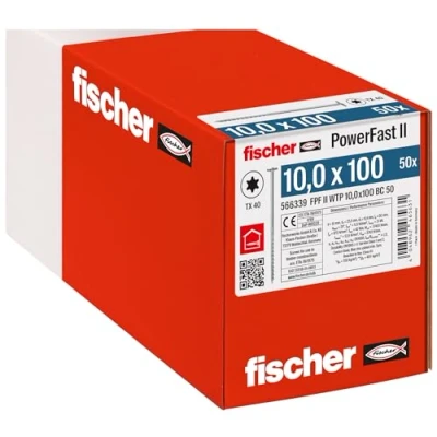 Large tightening effect: the wood screw with high-performance sliding coating and partial thread for firmly tightening the individual elements guarantees a larger contracting effect as well as a significantly increased head pull-through resistance Quick and flexible: the galvanised, blue passivated wood screw impresses with a significant reduction in screw-in time due to the increased thread pitch - this ensures quick installation for all your construction projects Clean workmanship: 3 ribs at the tip guarantee fast biting behaviour and pre-milling, in addition, the attachment is optimised and splitting of the wood significantly reduced, while higher pull-out resistance can be achieved due to the larger head diameter compared to countersunk screws Areas of application: the flat head screw with partial thread is particularly suitable for substructures and the attachment of roof insulation in coated wood, softwood as well as solid wood and wood joints and allows the wooden elements to be pulled together firmly Box contents: 50 x PowerFast II (item no. 566339), wood screws (10.0 x 100) with flat head, inner star socket and partial thread of fischer, Weight: 4.3431065614 pounds, Manufacturer: fischer