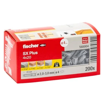 fischer 568004 SX Plus Expansion Wall Plug, 4mm x 20mm, Pack of 200