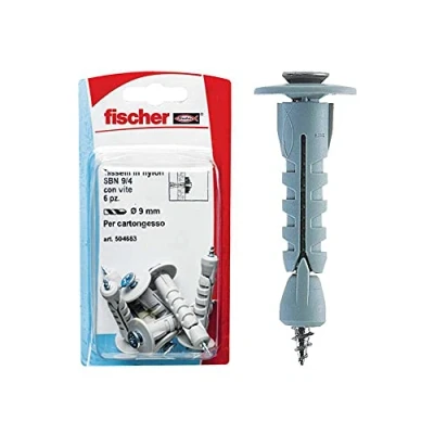 Fischer 6 x SBN Plasterboard Dowels 9/4 K with Screw, Universal for Fixing Lamps, Mirrors, Accessories on Sheets and Wood Panels