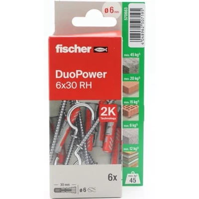 fischer Duopower 6 x 30 with Open Socket 4U, Multi Material Wall Studs, Suitable for Hanging Bicycles, Pictures, cabinets, TV Stands, Shelves, Furniture.