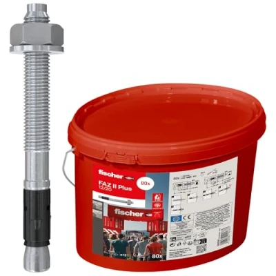 Strong hold for heavy loads: the bolt anchor made of galvanised steel impresses with a flexible installation for pre-mounting, push-through and spacing mounts and also offers optimal attachment of the highest loads with maximum anchoring depth Highest load capacity: the proven expansion clip of the heavy duty anchor guides the loads particularly safely into the concrete and thus allows the highest load capacity, which allows maximum safety with a service life of over 120 years, even in applications in earthquake areas Reduction of time and effort: the steel anchor provides an easy setting process without drill hole cleaning, where only a few hammer strokes are required, for perfect results with the highest demands Areas of application: the high-quality bolt anchor is approved for installation in cracked and non-cracked concrete C20/25 to C50/60 and also suitable for concrete C12/15 and C80/95, the perfect solution for fixing railings, ladders, machines, facades and much more. Indoors Box contents: 80 x FAZ II Plus bolt anchors 12/20 gvz in bucket (item no. 568860), steel anchor for heavy loads of fischer, Manufacturer: fischer