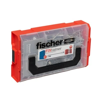 SPACIOUS STORAGE BOX: In our handy FixTainer, every dowel, screw, nut and washer will find a fixed place - with removable dividers and up to 6 compartments in total, the box can be individually configured Quick and flexible: the galvanised, blue passivated wood screw impresses with a significant reduction in screw-in time due to the increased thread pitch - this ensures quick installation for all construction projects Clean workmanship: three ribs at the tip guarantee fast biting behaviour and pre-milling, in addition, the setting is optimised and splitting of the wood is significantly reduced, while the look and feel are improved due to the optimised underhead geometry Areas of application: the countersunk screw is suitable for use in load-bearing constructions made of wood as well as for connecting metal parts to wood such as angles, joist hangers and metal fittings, in addition, the screw is suitable for use in fischer dowels (e.g. DuoPower or UX) with tested loads Box contents: 1 x FixTainer PowerFast II (item no. 562272), pre-sorted box with 525 PowerFast II chipboard screws in galvanised and blue passivated, with countersunk head, TX drive and partial thread (150 x PowerFast II 4.0 x 35, 100 x PowerFast II 4.0 x 40, 100 x PowerFast II 4.0 x 40, 100. x x PowerFast II 4.5 x 45, 75 x PowerFast II 4.5 x 50, 50 x PowerFast II 5.0 x 60, 50 x PowerFast II 5.0 x 70) and 2 x ProfiBit of fischer, Manufacturer: fischer