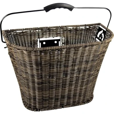 Mounting: the basket in brown retro look is attached to the front of the stem or handlebars and can be released in seconds at the touch of a button Bracket: the holder for attaching the basket is included and does not need to be purchased separately Load capacity: the bicycle basket has a load capacity of 5 kg, and also prevents the basket from turning or tilting Adjustment: the angle of the basket can be adjusted as required Material: the braided basket is made of high-quality and weather-resistant polyrattan