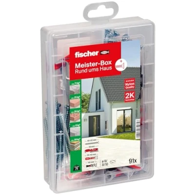 This is inside: Duopower, Duotec, Duocharge and the matching screws of the most important diameter in a practical Meister-BOX is all that for mounting lights, mirrors, wardrobes, hanging baskets and much more. in a variety of building materials, such as concrete, natural stone and steel plates are required. A dowel for all building materials: the included DUOPOWER is the first dowel that decides whether it spreads, folds or knots - so it automatically adapts to the requirements of all building materials, achieves the highest load values and can be used universally. Absolutely powerful: the Duotec tilt dowel is suitable for use in tight, insulated cavities with a small borehole diameter (10 mm) and short tilt element for use in tight, insulated cavities and ensures the absorption of high tensile and transverse loads in panel building materials. Easy installation and strong performance: the self-drilling Duoblade is an innovative dowel that can be precisely attached thanks to multi-component technology with its sharp metal tip, without special tools and pre-drilling, for an effective drilling process and safe installation. Box contents: 1 x Meister-BOX Duo-Line (item no. 548860), box with 91 Duotec 10, Double Blade and Duopower dowels (30 pieces. 6 x 30, 15 pieces. 8 x 40) and matching screws from Fischer., Weight: 0.75398093604 pounds, Manufacturer: fischer