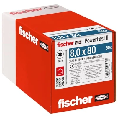 Flush-screwed: the wood screw with high-performance sliding coating and partial thread for tight tightening of the individual elements allows a flush fitting and guarantees a greater contraction effect as well as a significantly increased head pull-through resistance Quick and flexible: the galvanised, blue passivated wood screw impresses with a significant reduction in screw-in time due to the increased thread pitch - this ensures quick installation for all your construction projects Clean workmanship: 3 ribs at the top guarantee quick bite behaviour and pre-milling, in addition, the setting is optimised and splitting of the wood significantly reduced. In addition, the stepped countersunk head can be completely recessed into the wood, which allows a second component to lie flush or be screwed on Areas of application: the stepped countersunk screw with partial thread is particularly suitable for substructures and the attachment of roof insulation in coated wood, softwood as well as solid wood and wood joints and allows the wooden elements to be pulled together firmly Box contents: 50 x PowerFast II (item no. 566355), wood screws (8.0 x 80) with stepped countersunk head, inner star socket and partial thread of fischer, Weight: 2.4912235606 pounds, Manufacturer: fischer