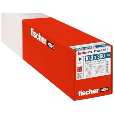 Large tightening effect: the wood screw with high-performance sliding coating and partial thread for firmly tightening the individual elements guarantees a larger contracting effect as well as a significantly increased head pull-through resistance Quick and flexible: the galvanised, blue passivated wood screw impresses with a significant reduction in screw-in time due to the increased thread pitch - this ensures quick installation for all your construction projects Clean workmanship: 3 ribs at the tip guarantee fast biting behaviour and pre-milling, in addition, the attachment is optimised and splitting of the wood significantly reduced, while higher pull-out resistance can be achieved due to the larger head diameter compared to countersunk screws Areas of application: the flat head screw with partial thread is particularly suitable for substructures and the attachment of roof insulation in coated wood, softwood as well as solid wood and wood joints and allows the wooden elements to be pulled together firmly Box contents: 50 x PowerFast II (item no. 566352), wood screws (10.0 x 360) with flat head, inner star socket and partial thread of fischer, Weight: 13.007273458 pounds, Manufacturer: fischer