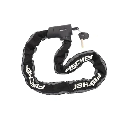 Flexible: with the chains and the length of 100 cm, this Fischer bicycle lock gives plenty of freedom of movement when locking Comprehensive: 3 keys are included. One of the keys has lighting, which makes it easier to find the lock in the dark Protected: the textile cover ensures that the bike does not get scratches. On the other hand, the woven reflective material also improves safety Highly secure: this Fischer chain lock has passed the test of ART and is certified by the foundation, which testifies to a high level of theft protection. The high-security locking cylinder provides additional security, which protects against the lock from breaking Strong: with a diameter of 8.3 mm, the four-sided chain links of the Fischer bicycle lock are very robust and hardly crackable. The chain links are made of tough and hard steel, which increases the resistance of the Fischer bicycle lock