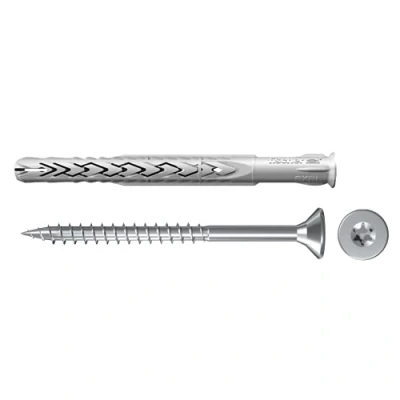 Fischer SXRL Extended Dowels 10 x 100 WT ls with Torx Flat Head Screw for Fixing Facades, Counter Ceilings, Enclosures, Suitable Concrete, Brick and Hole