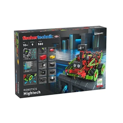 FASCINATING MODEL CONSTRUCTION: With the exciting robot kit, various play robots can be constructed and then programmed using free software. COOL FEATURES: Highlights include motorized omniwheels, new voice control, and a camera with image processing that allows, for example, the soccer robot to recognize a ball. BEGINNER & EXPERT: While the entry-level models provide an introduction to the world of robotics and programming, the high-end models allow existing knowledge to be perfected. PLAY & LEARN: With the research set, your child can practice motor skills, dexterity, and coordination, and acquire basic programming skills – true to our motto "Understanding technology through play." PACKAGE CONTENTS: 1 x ROBOTICS Hightech, model kit for girls and boys aged 10 and up, set for 9 models, robot toy with 580 parts by fischertechnik – made in Germany., Manufacturer: fischertechnik