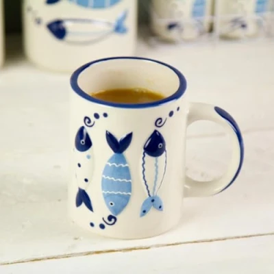 Nautical Design, Fish Tales Raised Design Large Cup, 375ml, Beach Hut Ceramics, Coastal Ceramics,Small Cup