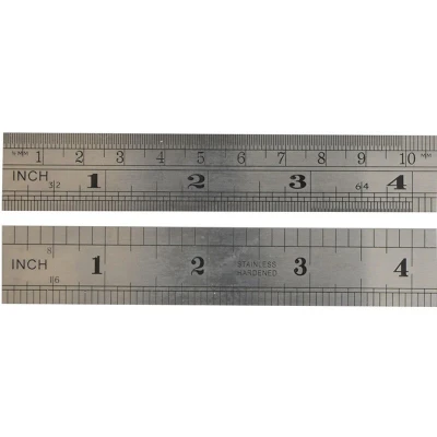 General description High quality stainless steel rule, permanently etched and polished for long-lasting clarity and accuracy of measurement. This double-sided rule features both English and metric markings, making it versatile for various measuring needs. Technical specifications Length: 300mm (12 in) Width: 28mm Material: Stainless steel with satin chrome finish Markings: Photo etched, subdivided in ½ mm, mm, 16th, 32nd, 64th, figured in cm and inches Other information