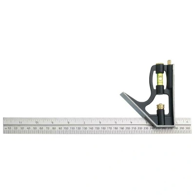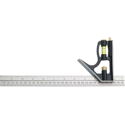 General description This is a versatile combination square designed for precise measurements in woodworking, metalworking, and DIY projects. It features a durable matte black die-cast stock, a polished steel blade with clear markings etched on both sides, and a brass locking screw for secure adjustments. The tool includes a separate scriber for marking materials and can be used as a try and mitre square, depth gauge, steel rule, and straight edge. Additionally, it has a built-in spirit level to ensure horizontal and 45° plumb readings. Technical specifications Blade length: 12 inches (300 mm) Graduations: 32nds, 16ths, and millimeters Material: Steel blade, die-cast stock Features: Brass locking screw, etched markings, spirit level, separate scriber Compatibility and accessories Suitable for woodworking, metalworking, and general DIY tasks Includes a scriber for marking Installation No installation required; simply adjust the blade and lock in position as needed. Usage Use the spirit