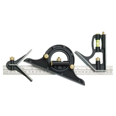 General description This combination square set is a versatile measuring instrument designed for precise measurements and marking in woodworking and metalworking projects. It includes a steel stock with a center head for easy centering of circles, an angle finder for setting angles, a spirit level, and a removable scriber. Technical specifications Material: Steel Stock length: 12 inches / 300 mm Graduations: Marked on the rule Features: Center head, spirit level, removable scriber Compatibility and accessories Compatible with standard woodworking and metalworking tools Includes a separate scriber for marking Installation No installation required; ready to use out of the box Usage Use the center head to locate the center of circles Set angles with the angle finder for precise cuts Use the spirit level to ensure surfaces are level or plumb Use the scriber for marking lines on materials