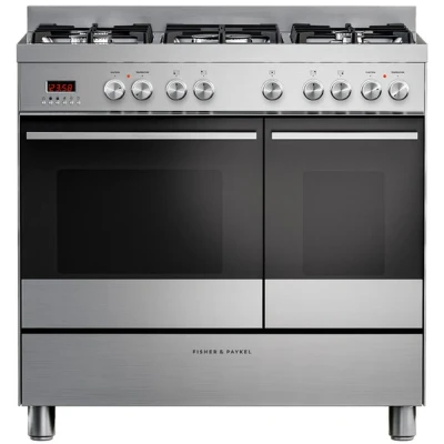 #html-body [data-pb-style=CSY7DFR]{justify-content:flex-start;display:flex;flex-direction:column;background-position:left top;background-size:cover;background-repeat:no-repeat;background-attachment:scroll;border-style:none;border-width:1px;border-radius:0;margin:0 0 10px;padding:10px}#html-body [data-pb-style=N8WRMR2]{border-style:none;border-width:1px;border-radius:0;margin:0;padding:0}A striking addition to your kitchen, with five powerful gas burners and the cooking flexibility of two convection ovens. Freestanding Range Cooker, Dual Fuel, 90cm, 5 Burners -Five burner gas cooktop with wok burner -Two independent convection ovens, one 70L total capacity and one 40L total capacity -Seven oven functions in each oven Cooking Flexibility: This freestanding range cooker has seven functions with pre-set temperatures, including Bake, Grill and Fan Forced, allowing you to use a variety of cooking styles. Sized to Suit: Designed for multi-shelf cooking, this freestanding range cooker has two 71L cavities, giving you enough room for a large family roast and all the trimmings. Burner Power & Control: The consistent flame and heat distribution of the gas burners combined with highly responsive dials offer precise heat control. Perfect a slow simmer for sauces or an intense heat for searing steaks. Easy Cleaning: Catalytic liners break down oil and fat splashes during cooking so you don’t have to spend hours cleaning. The stainless steel component is easily accessible and just needs a quick wipe clean after use. Safe and Sound: The door and cavity cooling system keeps the heat on the inside, protecting your hands and surrounding cabinetry. Getting large dishes in and out of the oven is a breeze with non-tip shelves. Complementary Design: With their black reflective glass and stainless steel finish, our freestanding range cookers are designed to match the rest of Fisher & Paykel’s kitchen appliance family.
