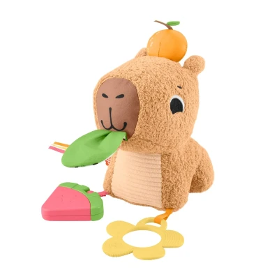 Fisher Price Baby Sensory Toy Snuggly Snacky Capybara Plush with Newborn Teether & Rattle Activities for Infants Ages 3+ Months, HYR54