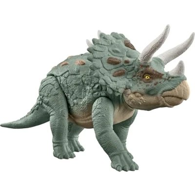 Rampage attack! Each Gigantic Trackers dinosaur toy has a spin wheel-activated continuous, lifelike attack motion that is species-specific. Move the wheel forward or back to see vicious chomping or savage head butting! Evolved for battle! Each dinosaur figure has a dramatic evolution feature, like spikes that grow dramatically on its back, or a second set of horns sprouting from its head! Just slide the nearby button to see it evolve. These large species figures are designed at about 14 inches long and have authentic sculpt details and come in a variety of decos that match different habitats. Connected play! Scan the dinosaur's hidden Tracking Code in the free Jurassic World Play App with a compatible smart device (not included) for Augmented Reality activities and fiercely fun games! Racing games and more! Motocross turns into wild destruction when the rider and motorcycle transform into a rampaging dinosaur knocking over obstacles and causing havoc! Mega presence! These large dinosaur figures with attack and evolution features make a great gift for fans 4 years and older., Manufacturer: Mattel