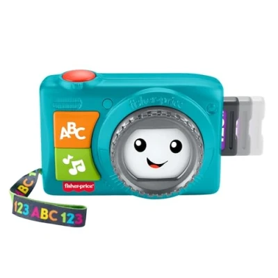 Fisher Price Baby & Toddler Toy Light Up Camera Laugh Learn Musical Learning Activity for Pretend Play Infant Ages 6+ Months, Multilanguage Version, JNV95