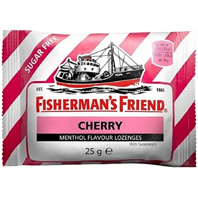 Fruity Fresh; Cherry flavour menthol lozenges with a fresh fruity taste Sugar Free; Fisherman’s Friend sugar free lozenges are made with natural ingredients and sweeteners A Friend for All; Fisherman’s Friend lozenges are suitable for vegetarians, vegans and are gluten free Quality ingredients that are certified Halal and Kosher Large Pack; 24x 25g packs of Cherry lozenges