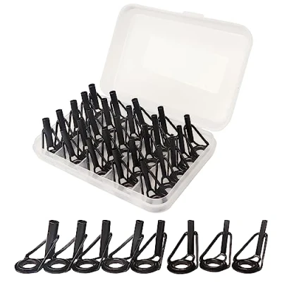 Sturdy:The fishing rod tips are made from stainless steel and ceramic, providing solid support for both the rod and fishing line Practical:The fishing rod tips create a fixed path for the fishing line, allowing it to move smoothly and without tangling Easy to Use:These rod tips can be easily attached with glue, allowing you to make quick repairs and get back to fishing Different Sizes:The kit contains eight fishing rod tips in different diameters, suitable for most rod sizes Easy to Carry:The rod tips replacement kit includes a plastic storage box, making it easy to organize and store in your tackle box or backpack