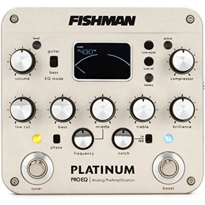 Completely redesigned from the ground up, the all-analog Platinum Pro EQ universal instrument preamp delivers incredibly accurate sonic detail for any acoustic instrument. 17-volt, high-headroom, discrete Class-A preamp 5-band tone control with sweep-mid and low frequency filter Integrated fully-chromatic digital tuner Balanced XLR D.I. with pre/post EQ setting and ground lift