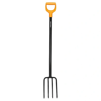 JoybuyThe Fiskars Solid Metal Garden Fork is a durable tool designed for loosening soil, aerating lawns, and removing weeds. Its D-shaped handle, boron steel construction, and rounded shaft ensure comfort, strength, and efficient performance.
