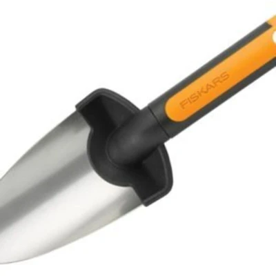 General description This Fiskars Premium Garden Trowel is designed for planting and transplanting in tough soils. It features a robust stainless steel head and a fiberglass handle with a soft elastomer surface for a comfortable grip. The tool is lightweight, durable, and suitable for both professional gardening and landscaping tasks. It includes a hanging hole for easy storage. Technical specifications Length: 375 mm Width: 87 mm Weight: 0.13 kg Material: stainless steel head, fiberglass handle with elastomer surface Compatibility and accessories Compatible with other Fiskars gardening tools Can be used alongside various planting and transplanting accessories for efficient gardening Installation No installation required; ready to use out of the box Usage Ideal for planting and transplanting in hard soils Use to dig, loosen soil, and transplant seedlings or plants Features a hanging hole for convenient storage Other information