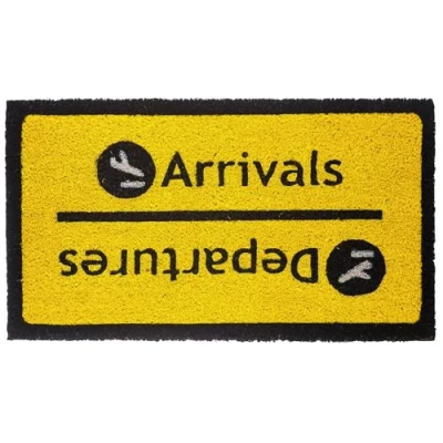 FISURA Arrivals/Departures Coconut Door Mat with Non Slip PVC Backing Funny Welcome Hand Painted Size 70cm x 40cm