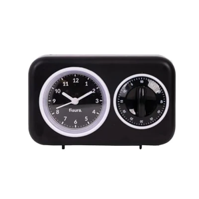 Visual timer – with a 60-minute timer, this retro clock is ideal for keeping an eye on time in the kitchen or during your learning hours. With a timer of up to 60 minutes, all you have to do is turn the button and set the minutes while you bake your favourite recipes or chronometer your learning sessions. Timer with alarm – in addition to a timer, it is also a clock with alarm that sounds with a classic "ringtone" at the set time. You can also forget the annoying tick tack as it is a silent clock. Perfect for keeping peace in the house! Retro clock – thanks to its size of 15.3 cm x 9.4 cm, it looks great in the kitchen as well as on your desk and adds a touch of bygone time to any room that will delight everyone. And with its retro design in black and white, it gives every corner an original vintage touch Perfect gift: this timer clock is the ideal gift for cooking lovers, retro fans or for anyone who needs a little push to organise their time better. A practical, stylish and personal gift that is sure to be well received! FISURA - Discover our fun products for home and decoration. If you need a gift, think of Fisura. Originality and unique designs distinguish us.