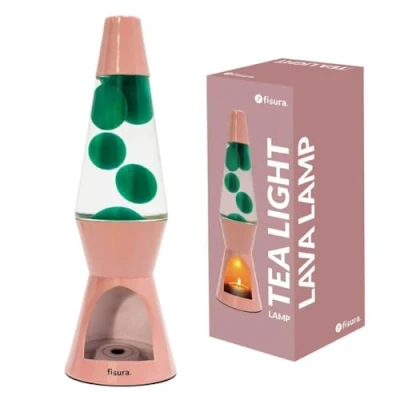 Fisura lava lamp with candle. without electricity. Pink and green lamp. Eco friendly Original gift. 11.4 in x 3.3 (candle not included)