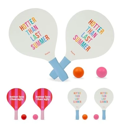 Fisura Original Beach Paddle Ball Set “Hotter than last summer, Multicolour Wooden Racket with Net Bag and 2 Balls included, Bat for Swimming Pool